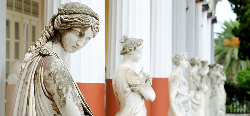 In Corfu Town‘s historic centre, you’ll find important museum exhibitions right next to the two fortresses that dominate the city, amongst many other historic buildings. The richest historical collection is housed in the Archaeological Museum, where you can admire artefacts from the Temple of Artemis, a Doric structure dating back to 580 BC and discovered during the Napoleonic Wars. In its day, it was one of the most imposing temples, featuring two rows of 8 columns at the front and back, and two rows of seventeen columns each along the longer sides. The Temple of Artemis in Corfu and the Parthenon are the only two Greek temples with two rows of eight columns supporting the entablature.