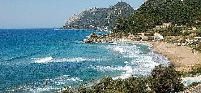 Du « trône du Kaiser », le célèbre endroit d’où Guillaume II aimait se retirer pour méditer, on admire un paysage extraordinaire, caractérisé par un jeu de lumières merveilleux. Nous nous trouvons à Pélékans, Πέλεκας en grec, un petit village entouré d’oliviers perché sur un rocher à 270 mètres d’altitude, sur la côte occidentale à 13 kilomètres de Corfou.